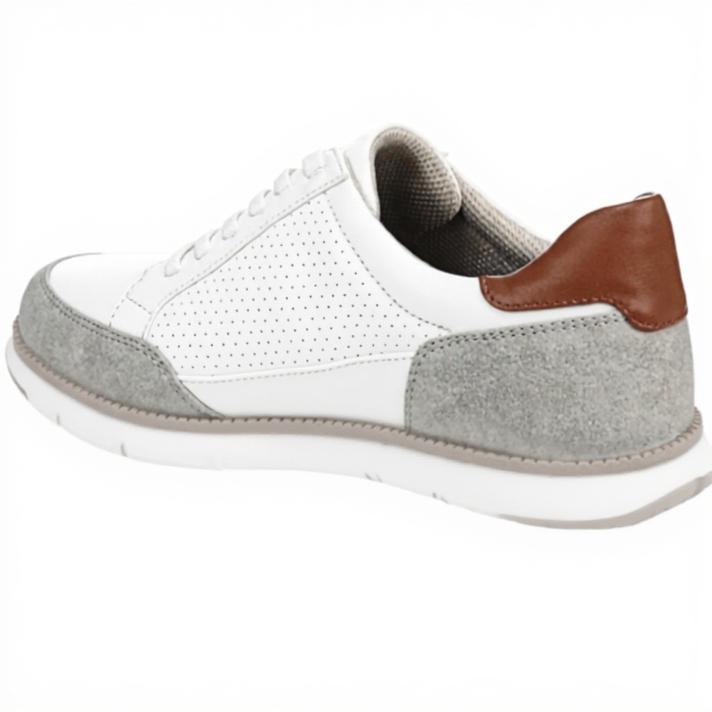 This sneaker is available in size 8 UK and color White Grey, with an item model number J3540S1100. It has a sport hybrid bottom with a 1-inch sole, mixed media construction, and a department classification for men’s footwear. The materials ensure durability and a lightweight feel, making it suitable for various activities.