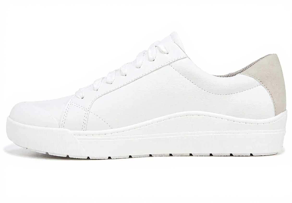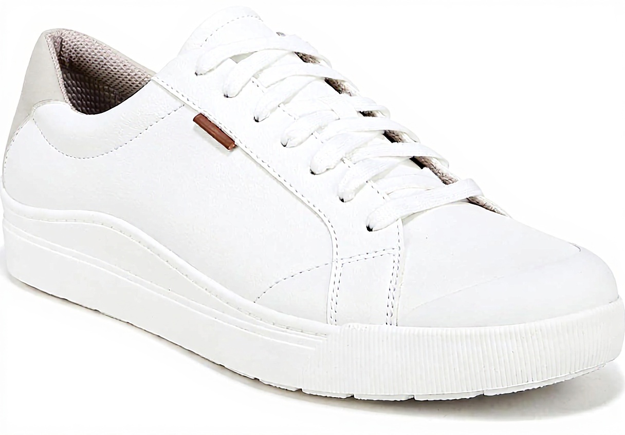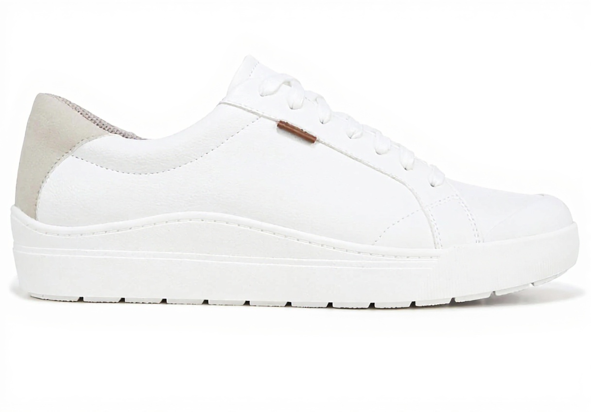 This men’s fashion sneaker from Dr. Scholl’s is sustainably crafted with a fabric lining partially made from recycled plastic bottles, along with a faux leather upper and partially recycled toe box and heel counter. It features ultra-flexible outsoles for extra grip and cushioning, and the sidewalls are pre-treated with Easy Clean Repellant to resist dirt and stains, keeping the shoes looking fresh longer.