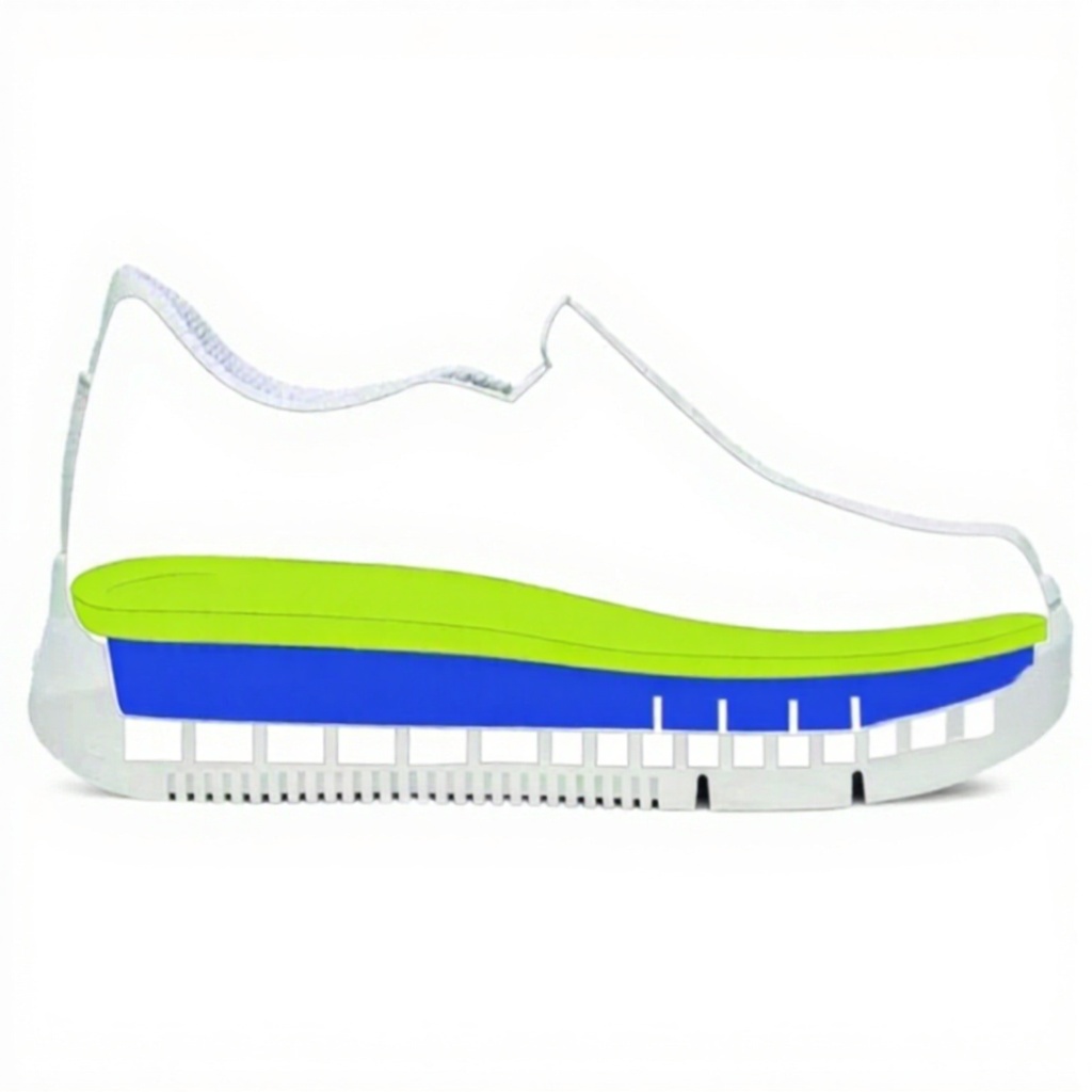 This sneaker incorporates a Susterra foam footbed made from bio-based materials, providing soft cushioning and built-in arch support. The upper uses recycled plastic bottles and PU leather, emphasizing environmental responsibility without compromising on quality or aesthetics.