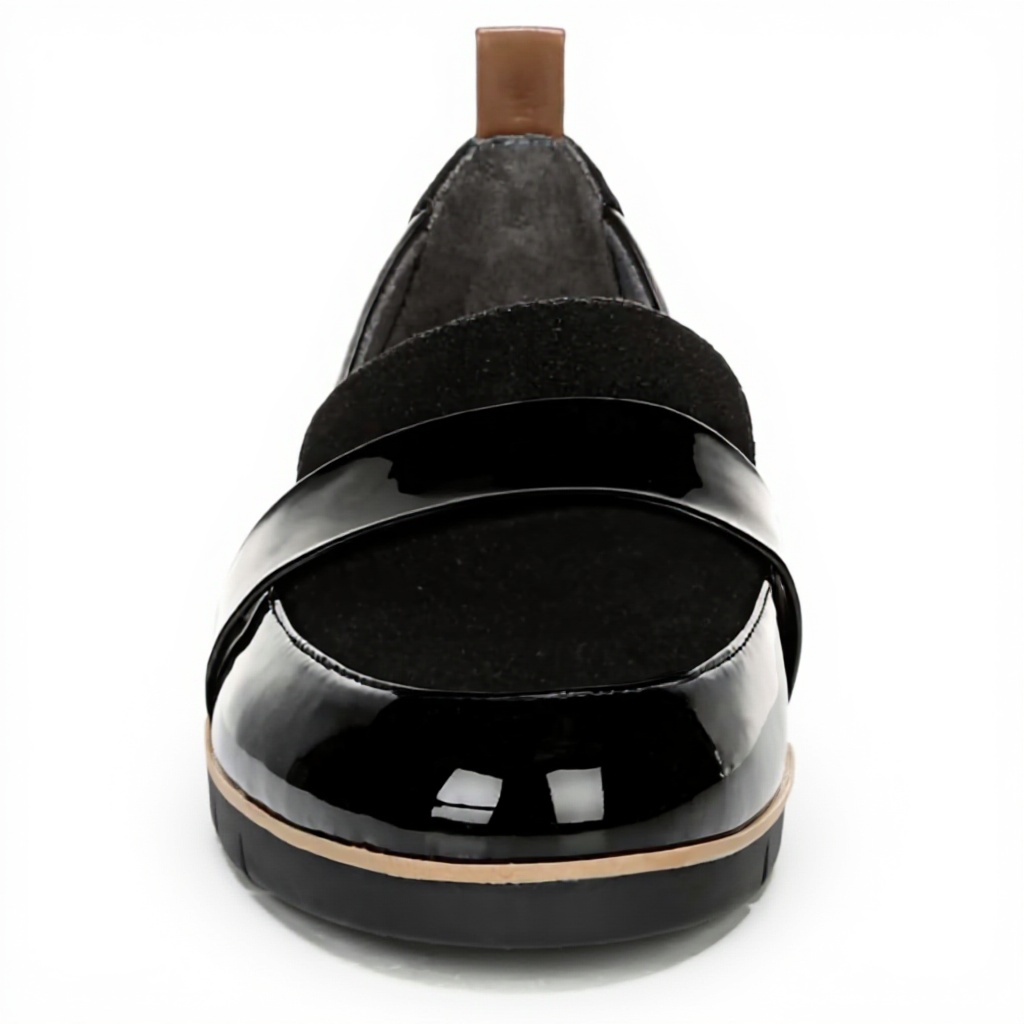 This women’s platform loafer from Dr. Scholl’s features a sleek black patent and microfiber upper, made in part from recycled materials for an eco-friendly touch. It includes a soft, feel-good lining and Comfort Insole Technology that offers anatomical cushioning, support, and flexibility for all-day wear. The lightweight construction and lug sole ensure durability and ease of movement.