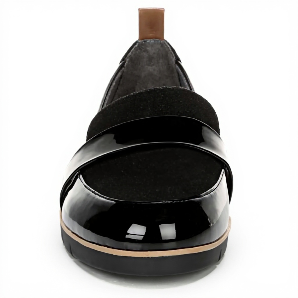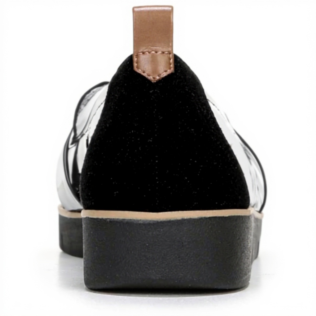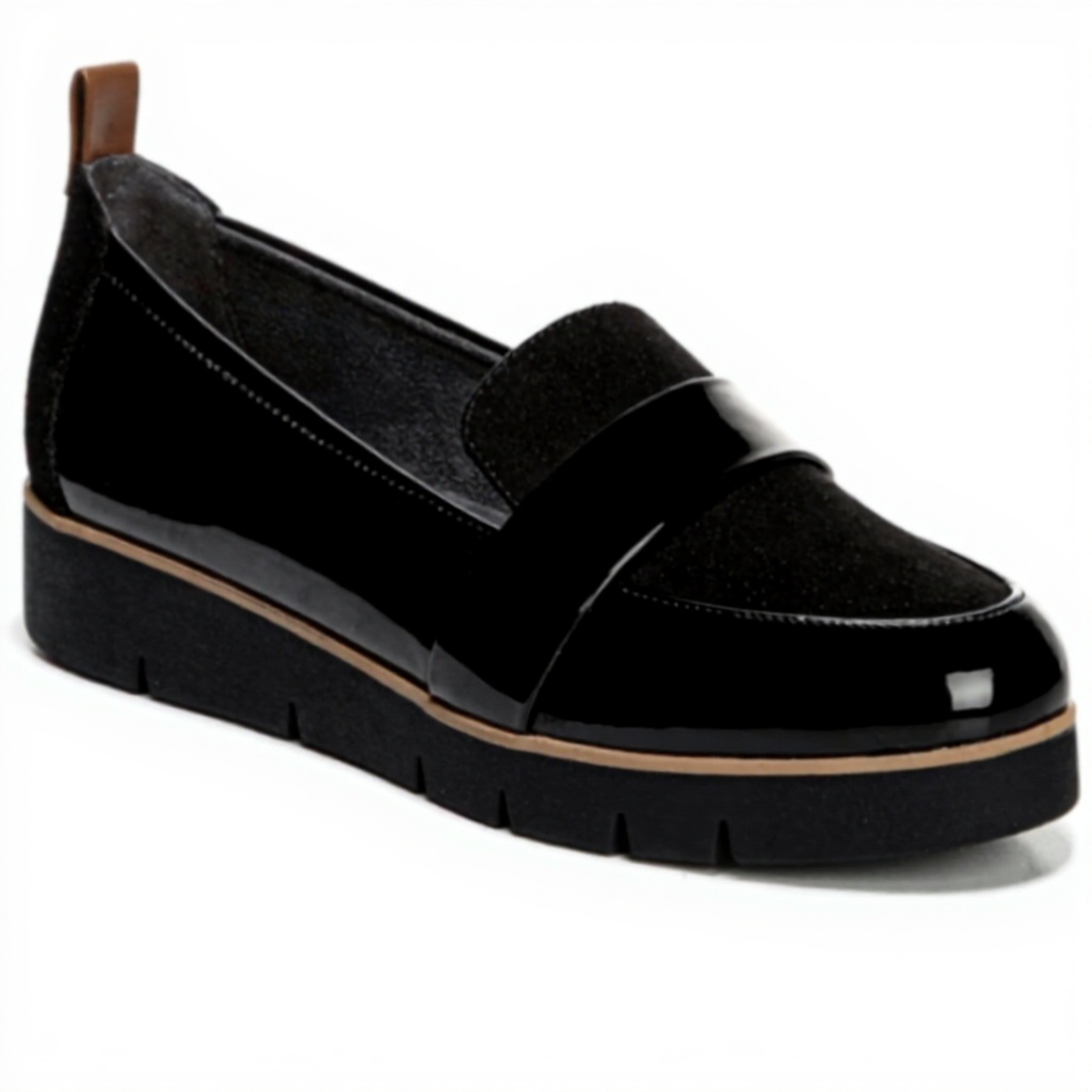These women’s loafers feature a stylish black patent and microfiber upper, made from recycled materials for a soft, feel-good lining. The design includes a faux leather back pull tab for easy slip-on wear, an almond toe, and a strappy accent that adds a touch of elegance. With Dr. Scholl’s comfort insole technology, they provide anatomical cushioning and support, while the lightweight, flexible construction ensures they move naturally with your steps.
