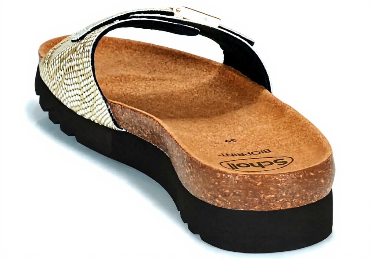 This sandal incorporates Bioprint comfort technology, providing enhanced support and cushioning, along with a sleek Platinum Gold design that complements various outfits.