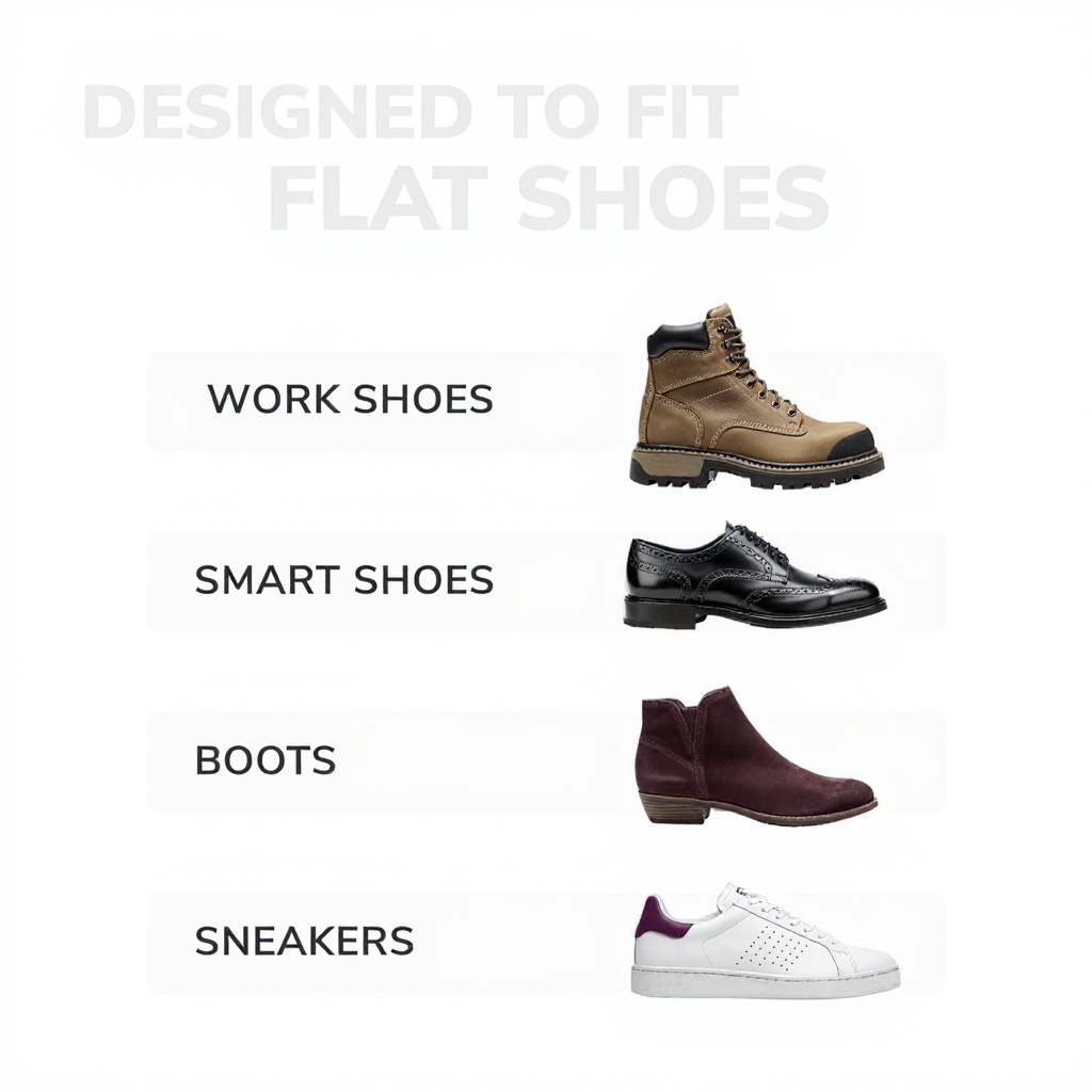 • Easy to fit in most shoe types for immediate comfort and convenience