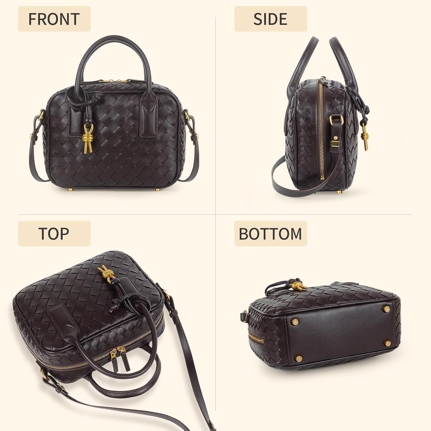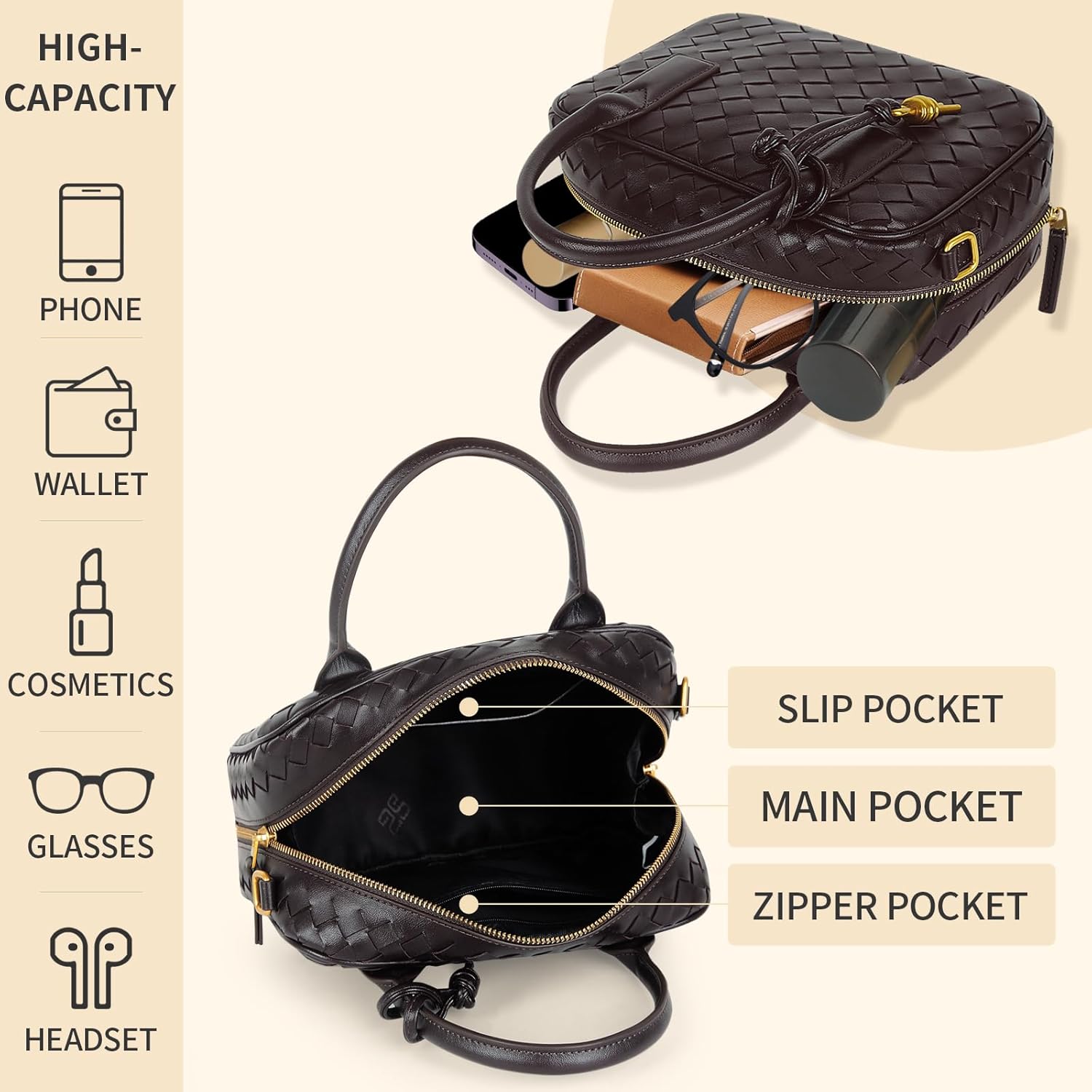 Women’s Handmade Woven Top-handle Bag Fashion Leather Shoulder Handbag Crossbody Purse Woven Purse for Women